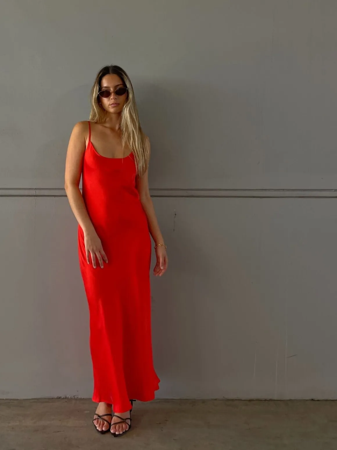 Silk Laundry 1996 Dress, made from 100% silk with a round neckline. Adjustable straps and a bias cut culminate in a sleek full-length hemline.