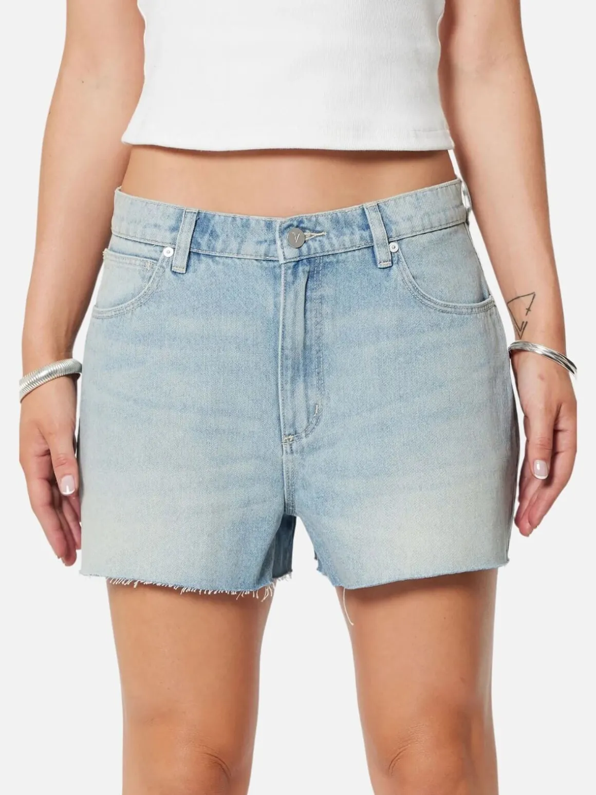 - Edie is a light blue tint wash with a modern scraping detail and a raw hem cut post-wash for effortless edge