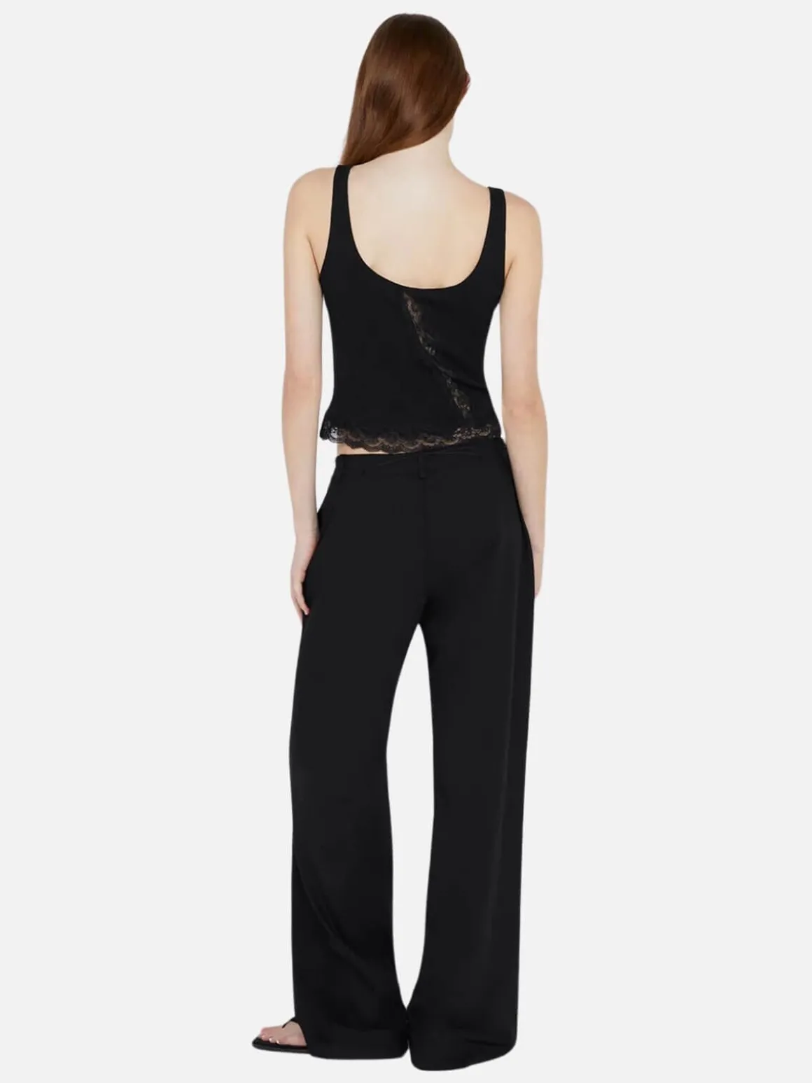 Crafted from comfortable cotton ribbed fabric, the BEC + BRIDGE Amyra Tank is an effortless and versatile top. It features a scoop neckline with a bound top edge and is detailed with a lace trim hemline. A diagonal lace trim runs through the front and back. Styled with BEC + BRIDGE Naida Panel Skirt. Also available in white