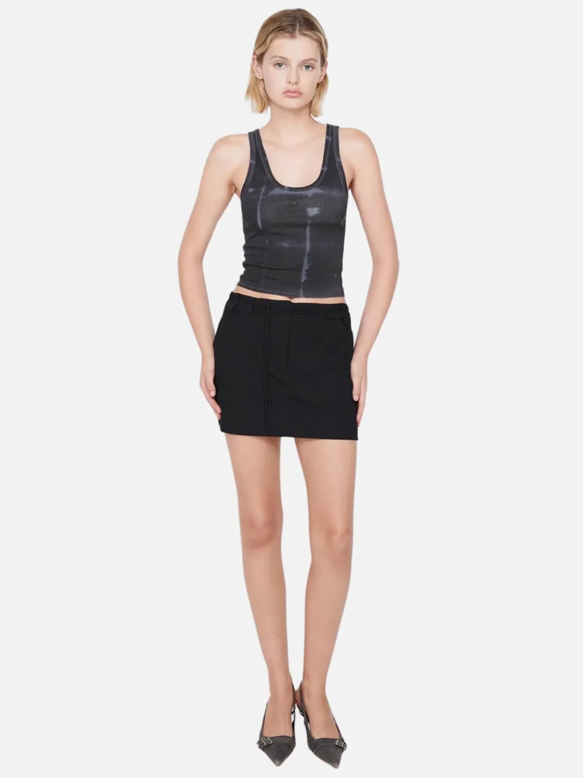 The BEC + BRIDGE B+B Rib Tank is a classic style crafted from a cotton blend, knit fabric, detailed by a tie dye look. The ribbed tank features a scoop back and front neckline with a small embroidered B+B on the centre. Top is finished with raw edges and can be worn both ways. Styled with BEC + BRIDGE Naida Mini Skirt.