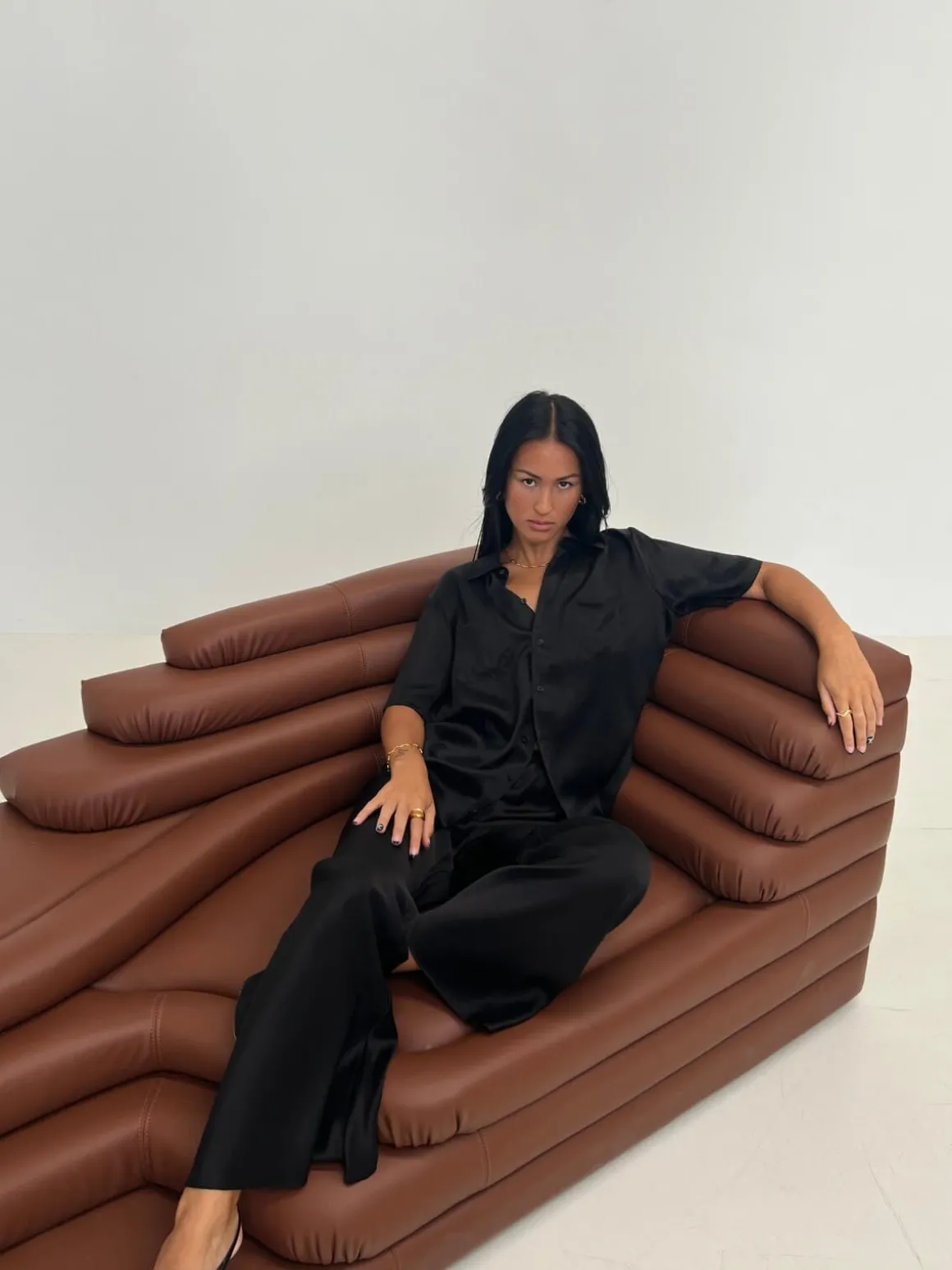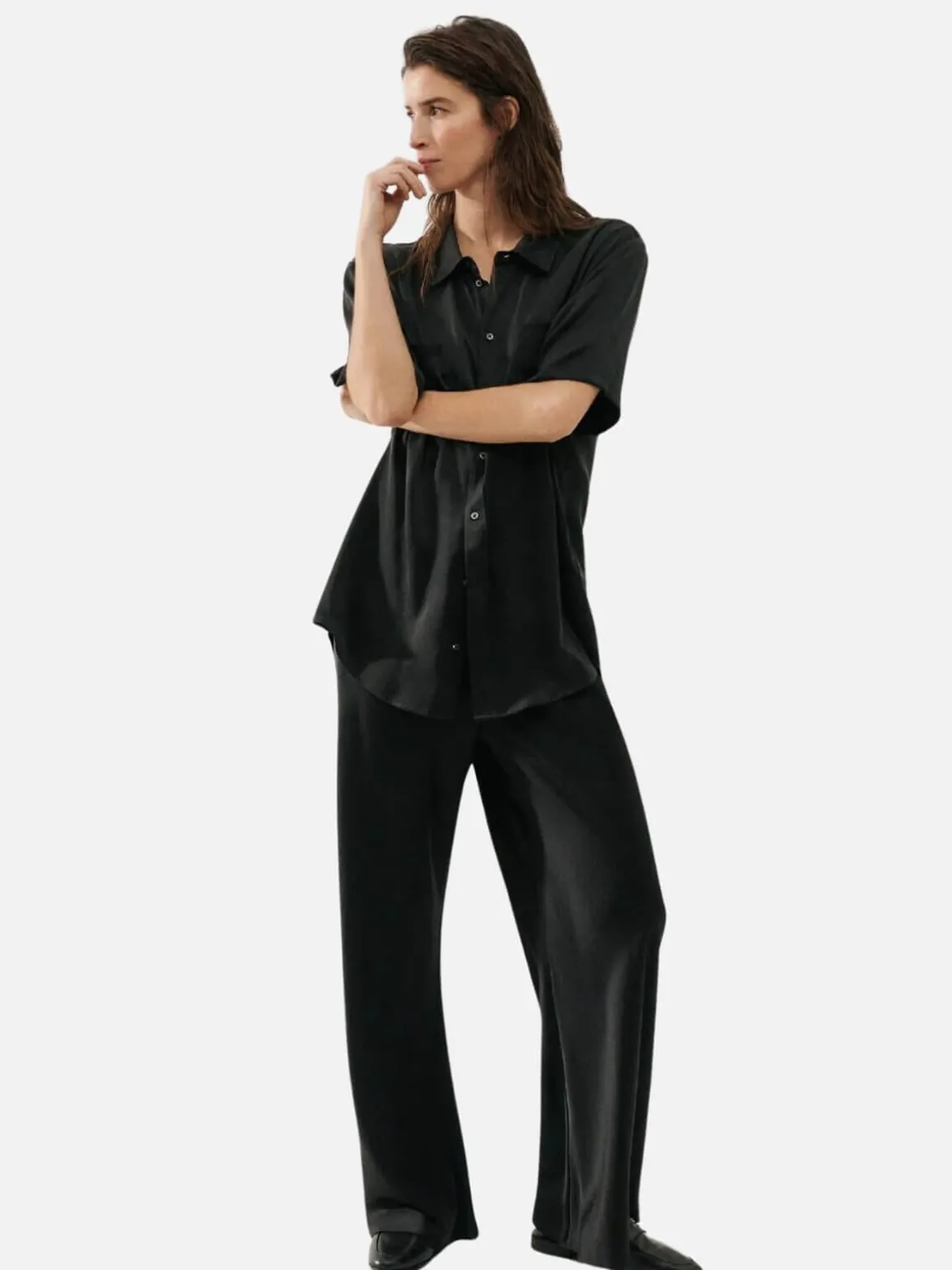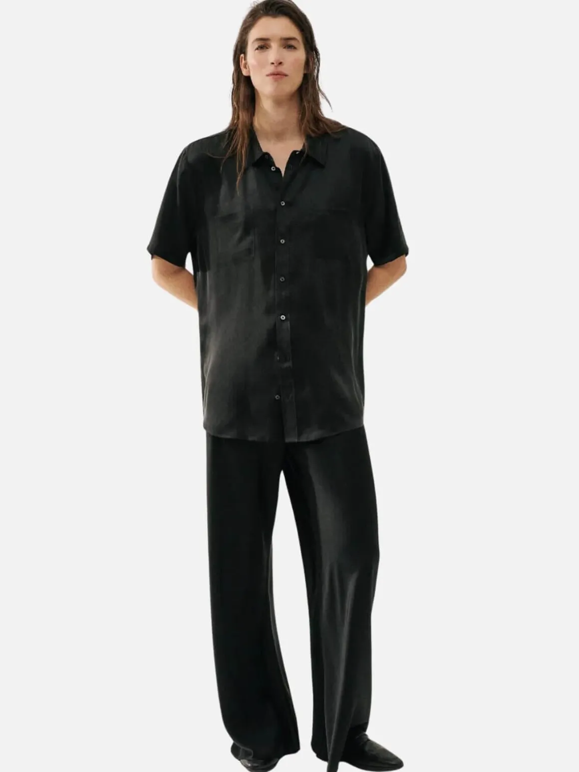 Our everyday pant, cut from 100% silk satin. A signature style that falls into a fluid silhouette with a slight flare. Its elasticated waistband sits high above the hip, pulling in to highlight the waistline. Combining elegance, comfort and style, it’s a piece that will complement any wardrobe.