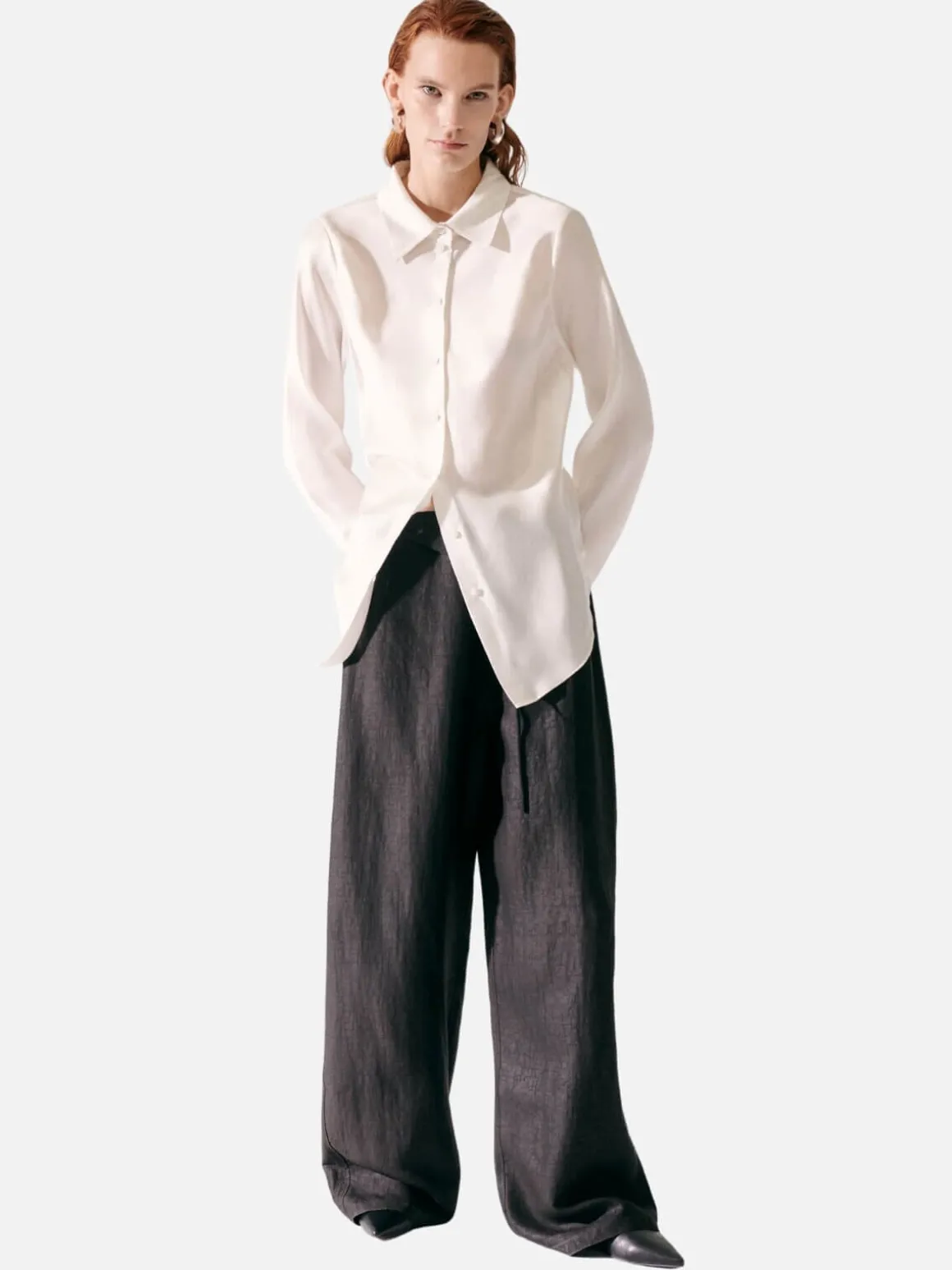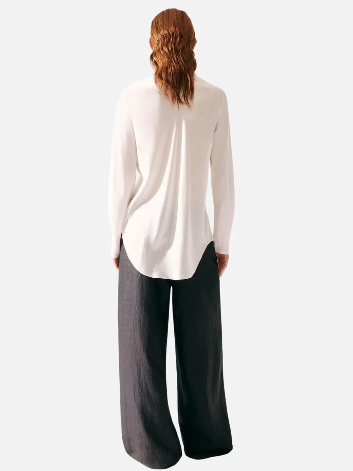 Silk Laundry’s Bias Cut Shirt offers a semi-fitted silhouette with a button-down front and a matte sheen, enhancing its subtle style. Cut on the bias for a considered, pragmatic fit.
