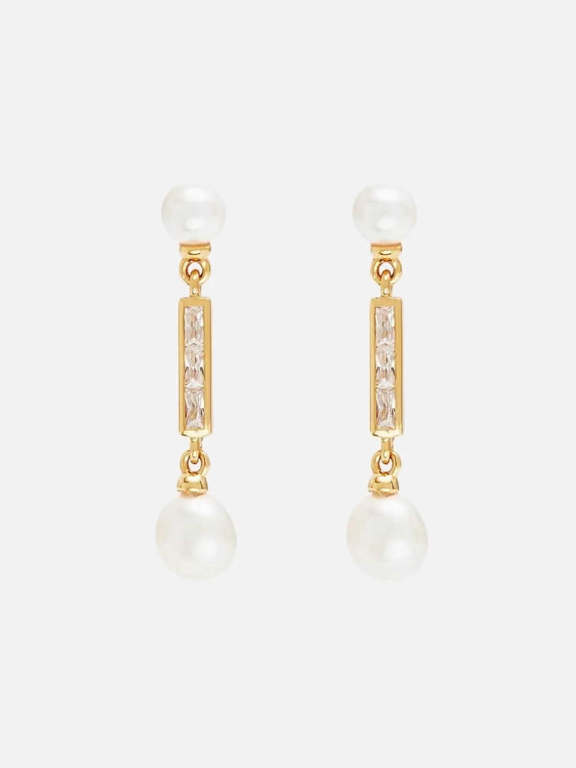 - Features baguette cut crystals, and round and baroque freshwater pearls in a drop earring style design.