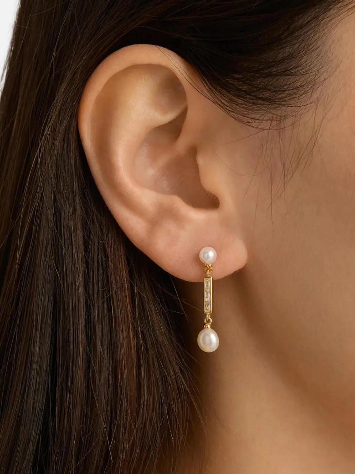 Let your light speak louder than words with our 18k Gold Vermeil Breathe Pearl Drop Earrings. Designed for occasion wear, this keepsake features baguette cut crystals and round and baroque freshwater pearls in a drop earring style design. Wear this piece as a reminder that, when everything around you is in chaos, simply breathe.