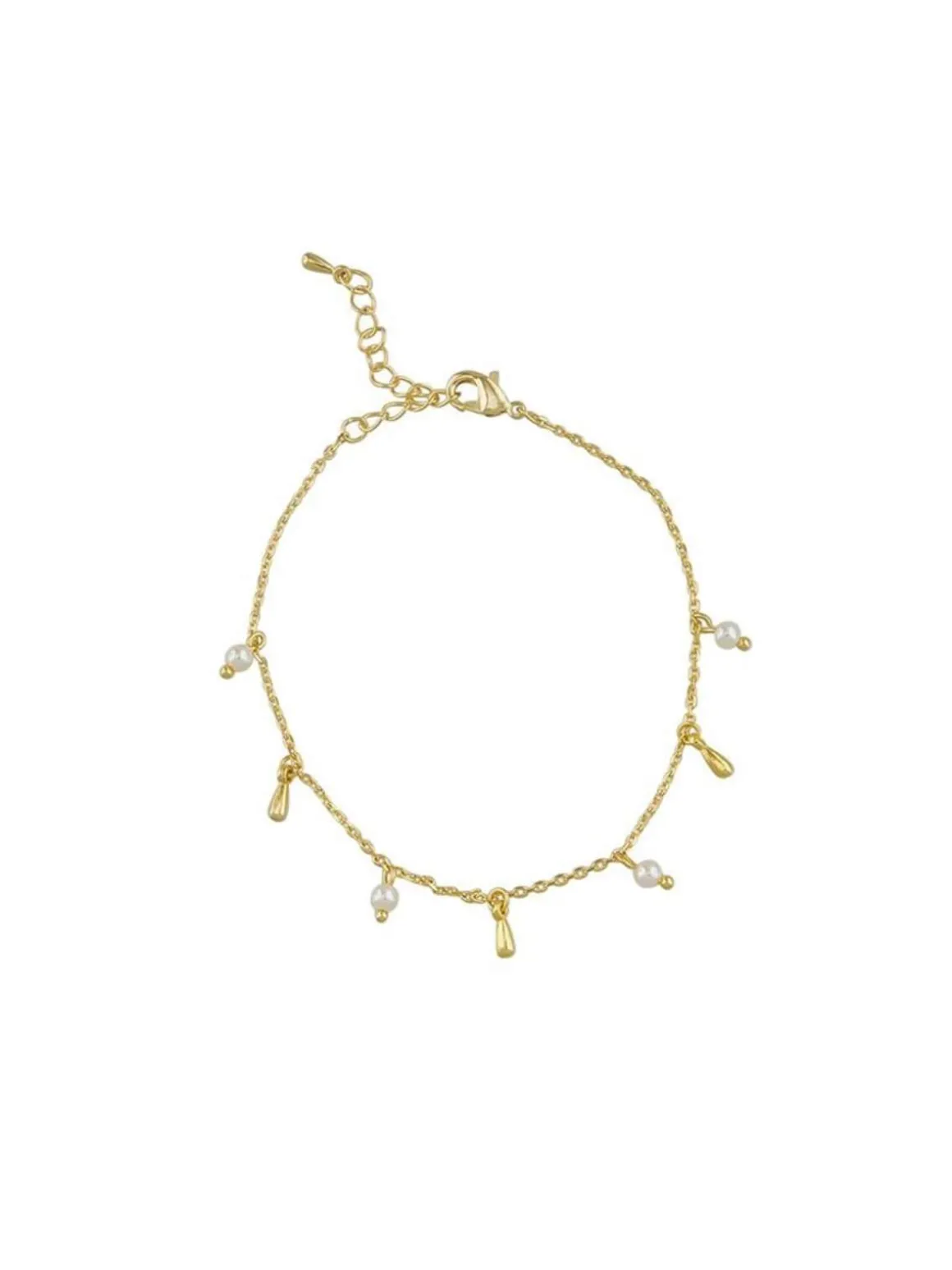 The Cassandra Necklace by Jolie & Deen is a delicate style with small hanging fresh water pearls and teardrop charms.