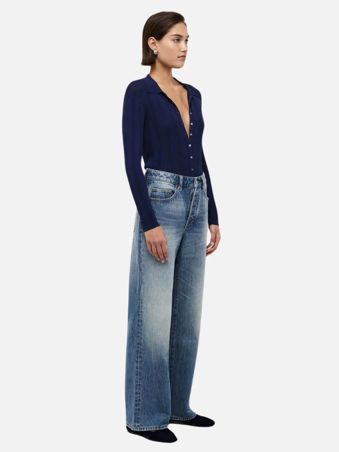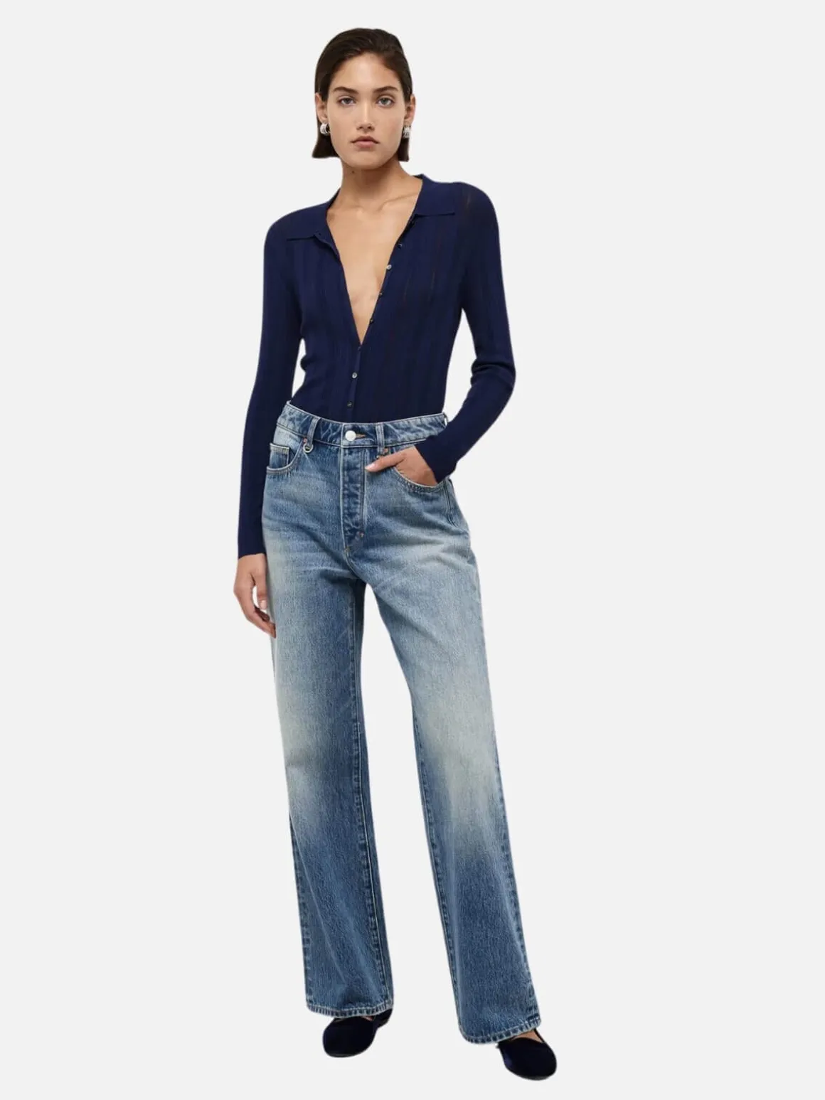 Coco Relaxed is a high waisted, relaxed straight leg jean. To wear high waisted take a size down. To wear on your hips for a more relaxed look take your true size.