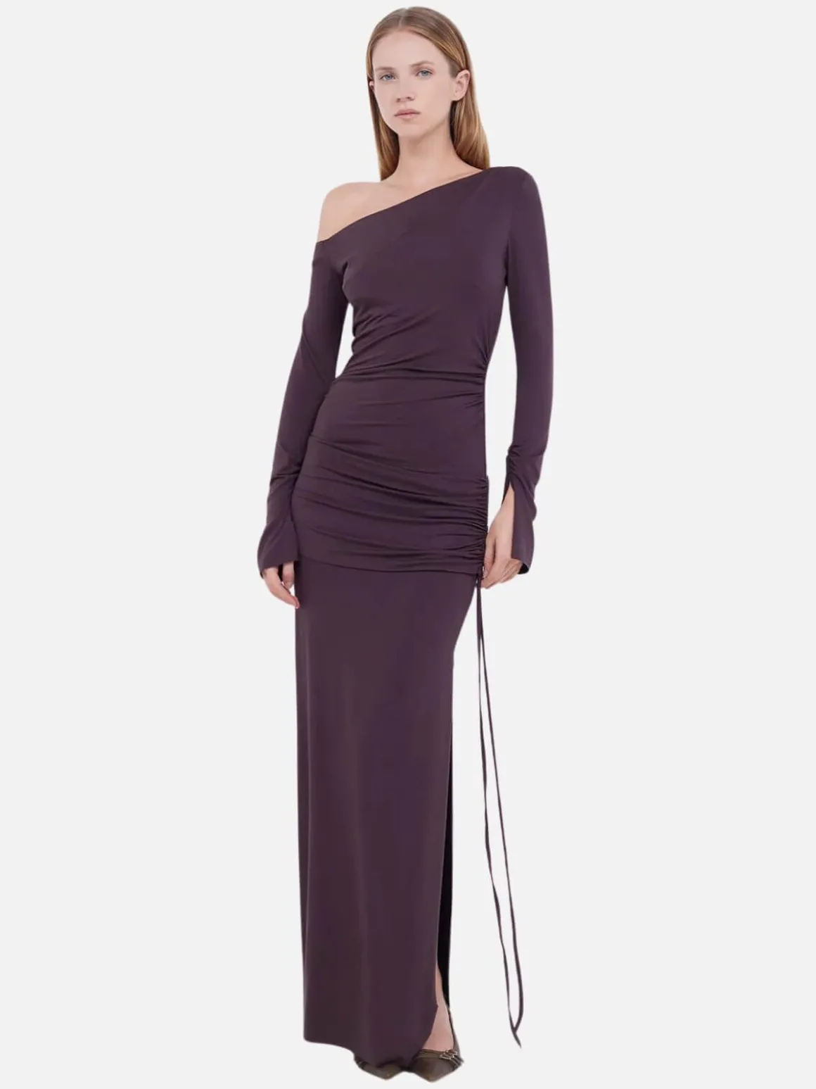 FIT: Designed to be fitted through the body. Dress is accessed through pull on styling, strapless bra friendly. Fabric offers slight stretch to the fit.