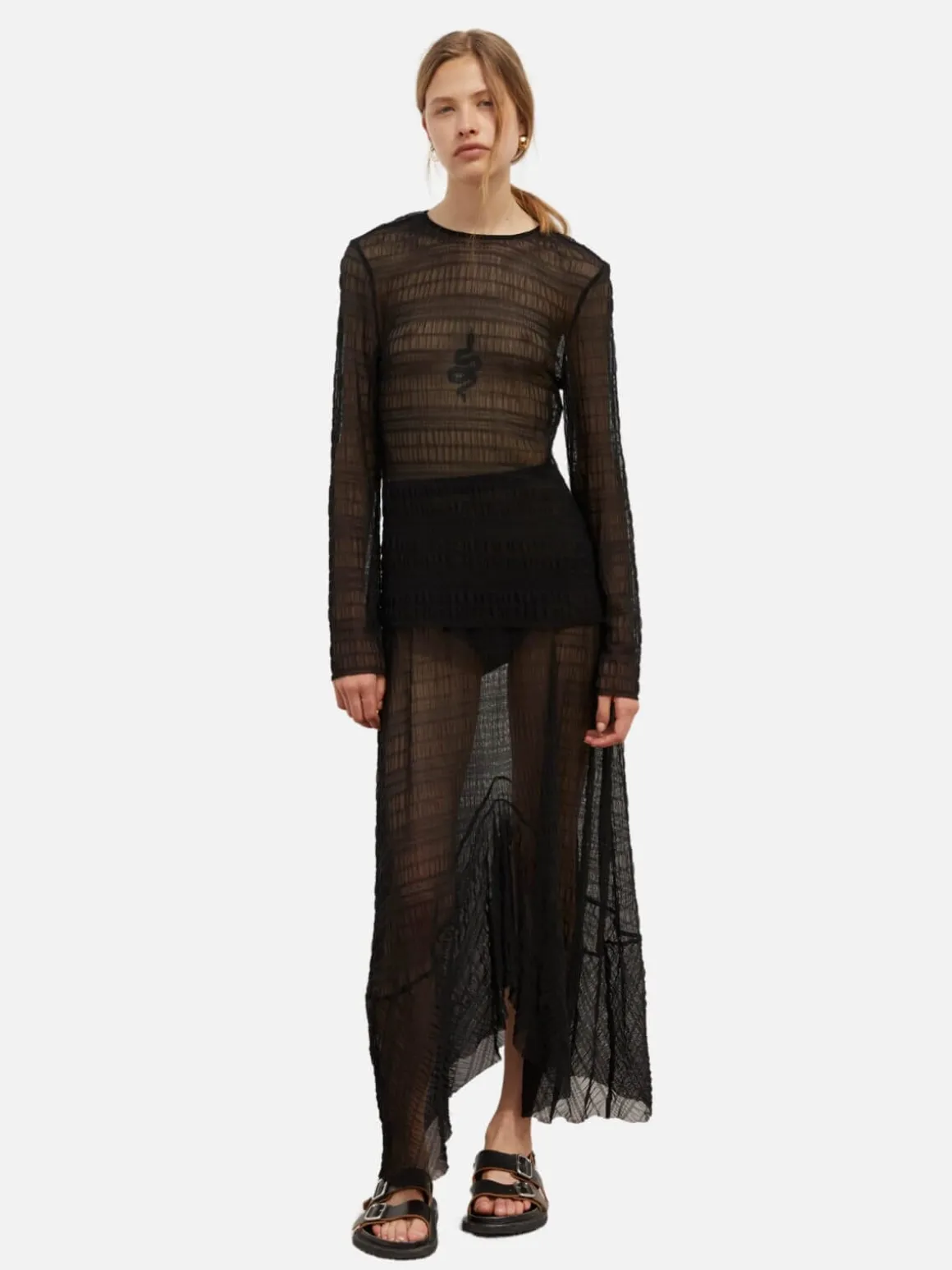 Sleek but raw-edged, the Ferra Skirt in Black is an ultra-comfortable update for the ready-for-anything wardrobe. By day, it’s an unfussy piece with maximum stun and zero effort, adored over swimwear and envied at brunch. By night, the asymmetrical hem calls for an extra swish and sway, a total look with the Ferra Top. This is your gateway: dress to impress in the most hands-off way possible.