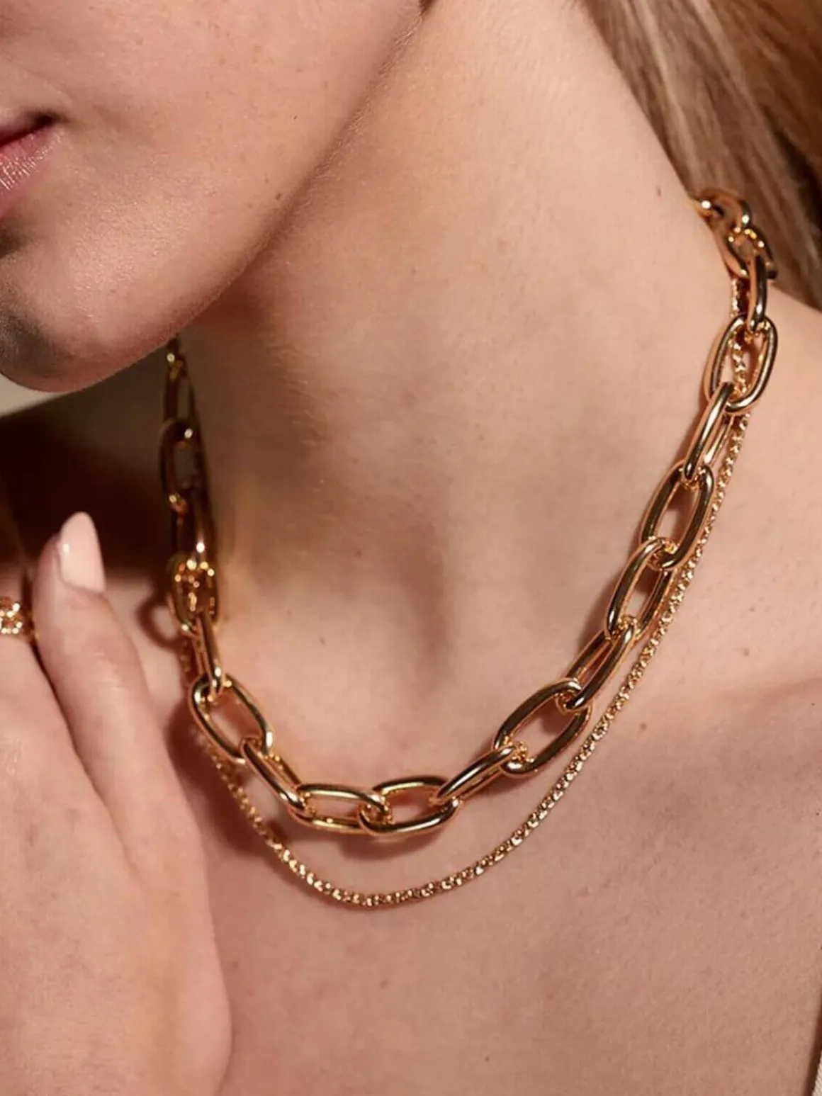 This Fleur Chain Necklace has a stylish, chunky gold plated design that makes a bold statement. Its high quality materials create a strong, long-lasting piece that is sure to be a timeless addition to your wardrobe.