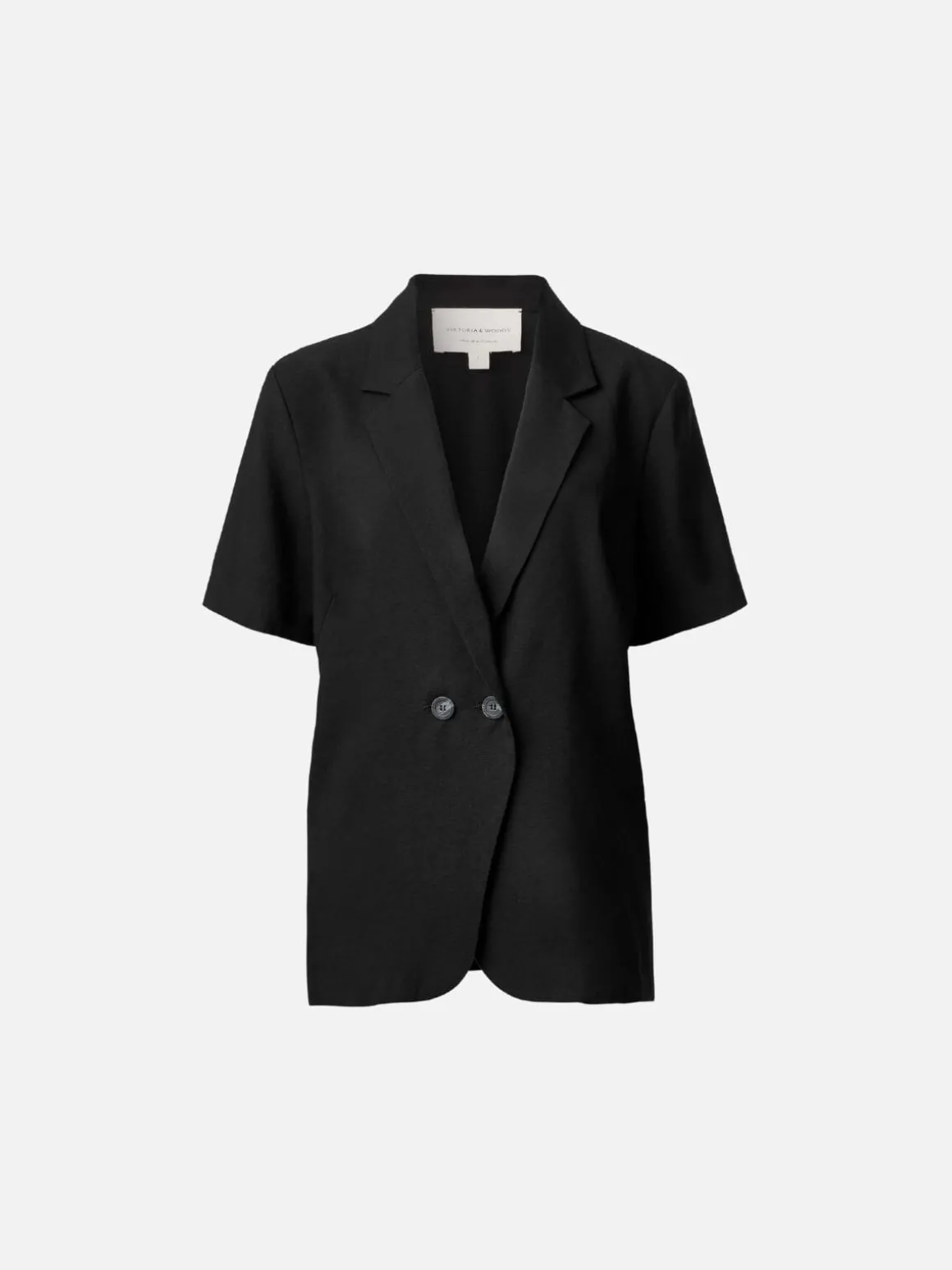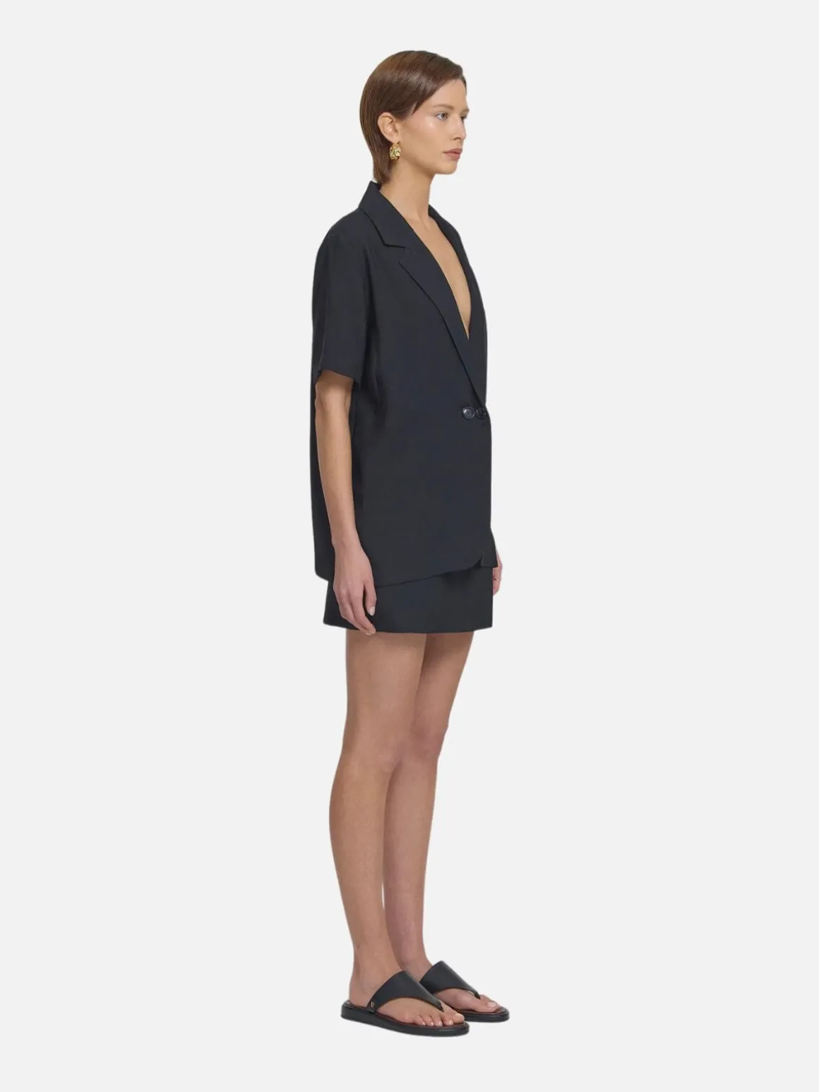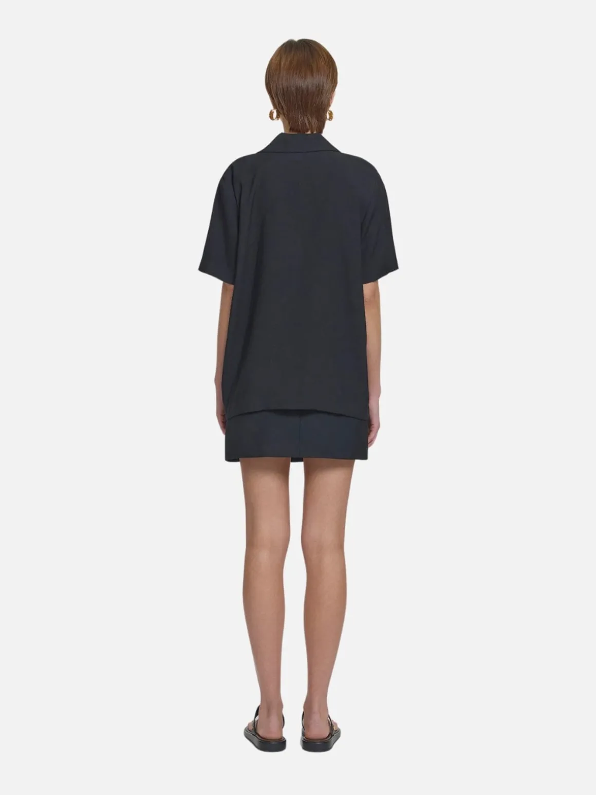 Introducing the Hepburn Shirt, a refined take on our iconic Chorus Shirt, tailored in a luxurious black bamboo blend. With its double-breasted front and relaxed fit, this piece offers timeless versatility. Effortlessly pair it with the Peninsula Skirt for a chic set, or style with tailored separates or denim for a classic, polished look.