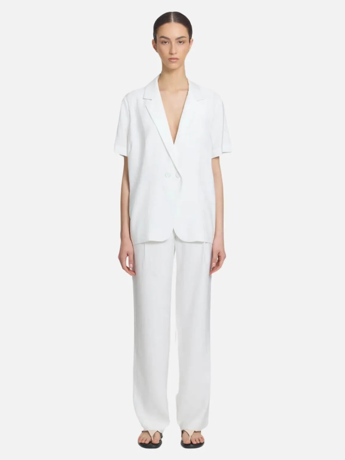 Introducing the Hepburn Shirt, a refined take on our iconic Chorus Shirt, tailored in a luxurious ivory bamboo blend. With its double-breasted front and relaxed fit, this piece offers timeless versatility. Effortlessly pair it with the Ivanhoe Pant for a chic set, or style with denim for a classic, polished look.