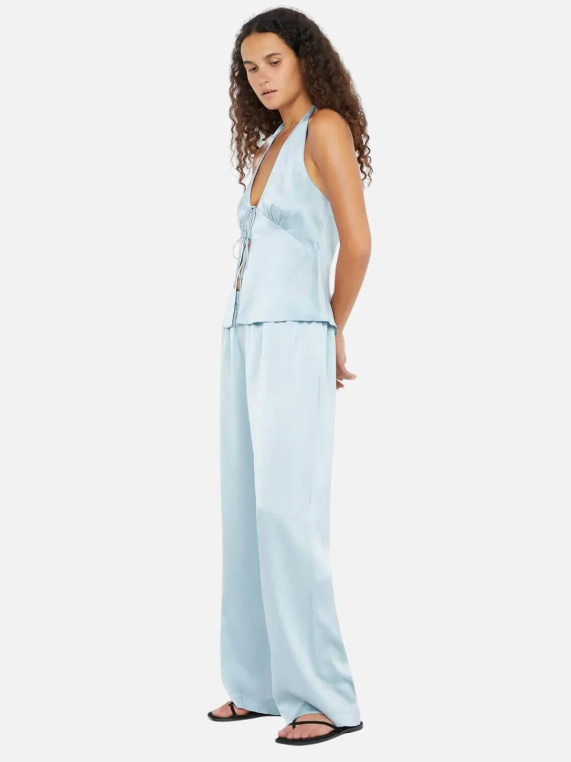 The BEC + BRIDGE Kaia Halter Top is crafted from silk in an effortless silhouette. The top features a V-neckline with delicate tie detailing, a halter neck and low cut back. Styled with the BEC + BRIDGE Kaia Pant.