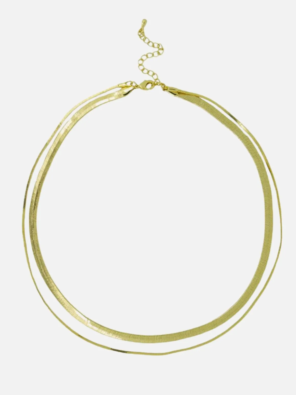 The Snake Chain Necklace is a fine chain necklace perfect for layering or wearing on its own.