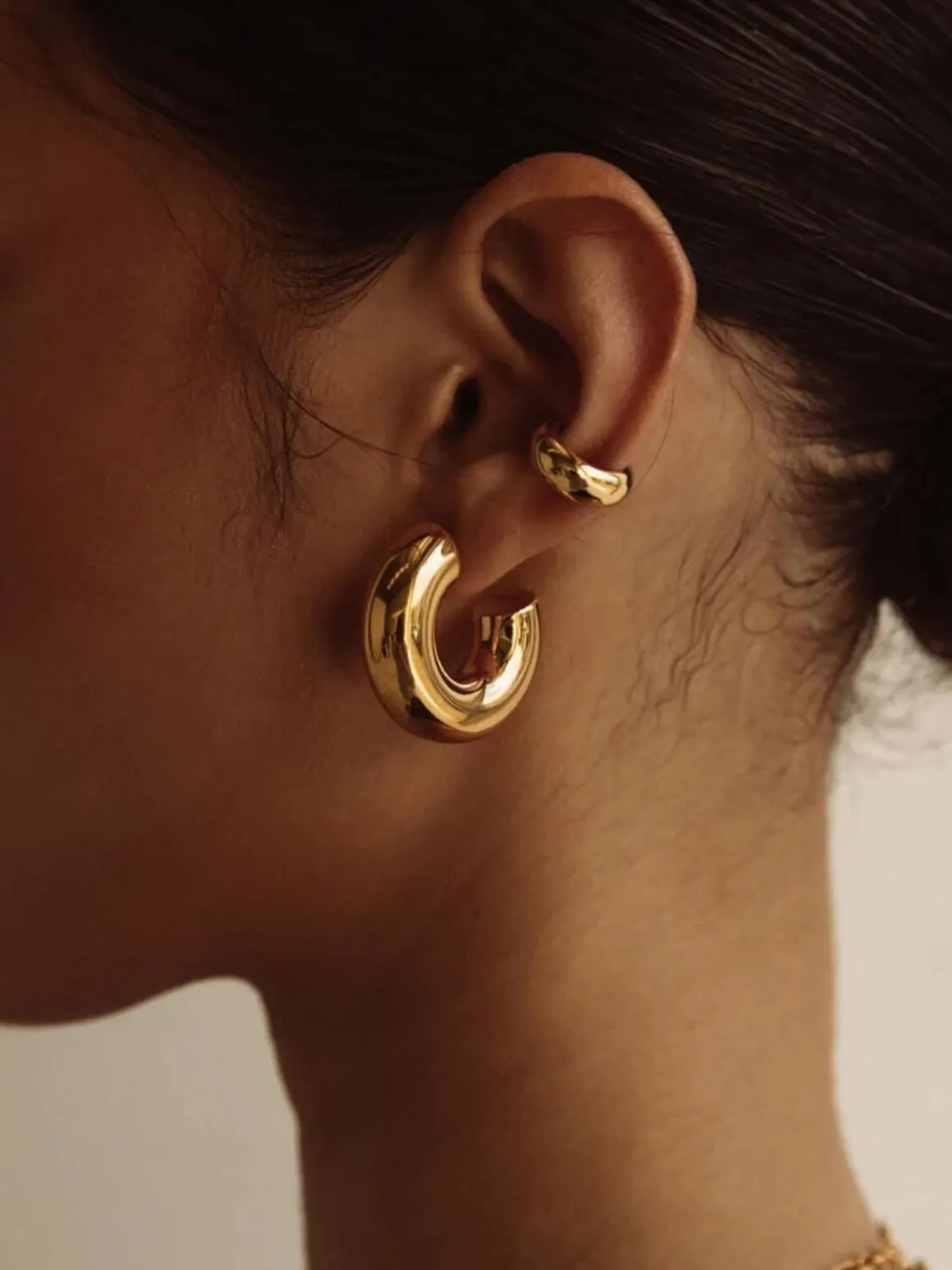 From an elevated day at the office to apèro hour, the Lolita Hoops are a style you can wear wherever the day takes you. This sturdy hoop design is crafted in 18k gold plated stainless steel and is secured by a parrot closure. Add an effortless polish to your look by pairing these with adornments that are equally as minimal.