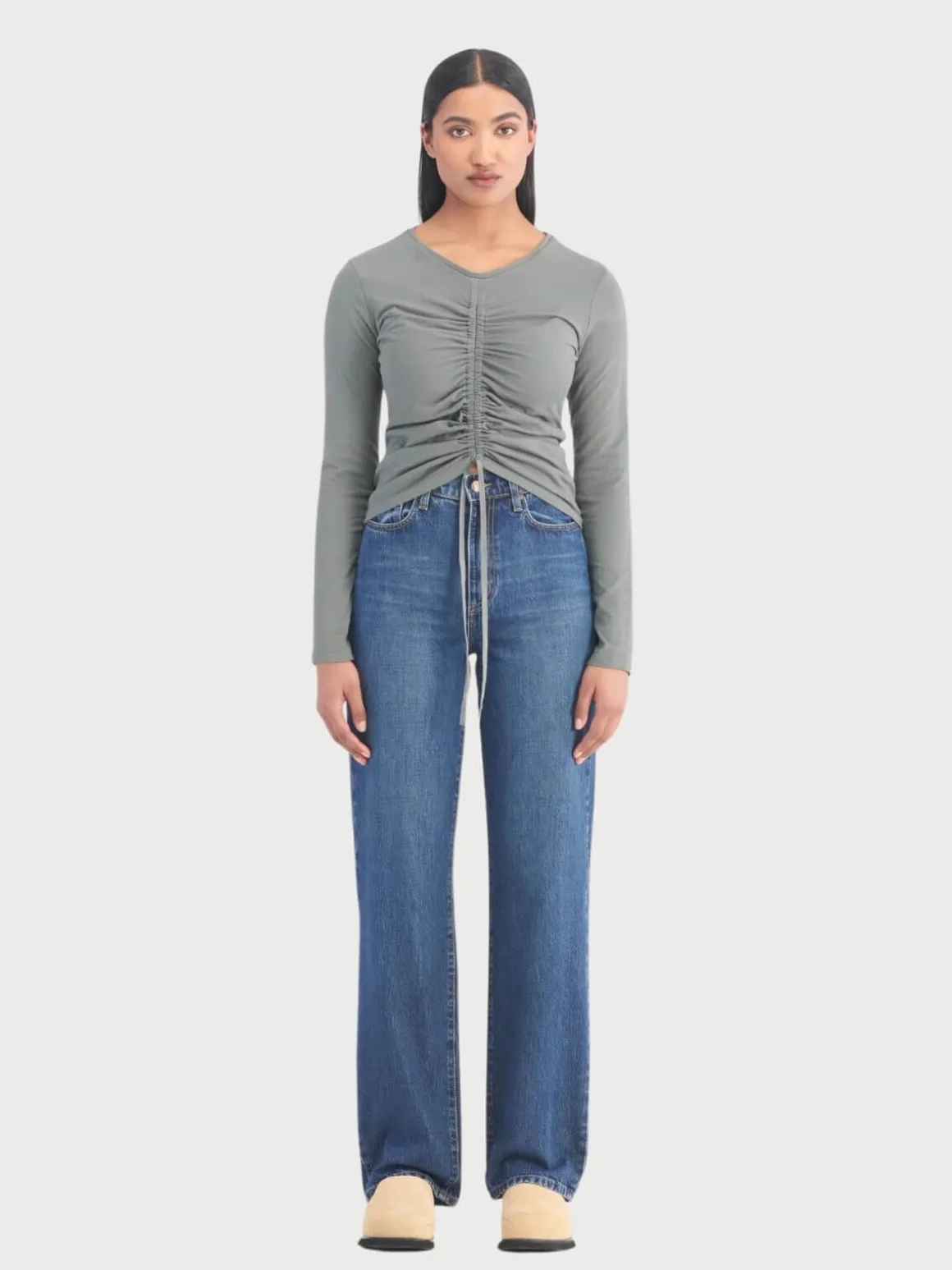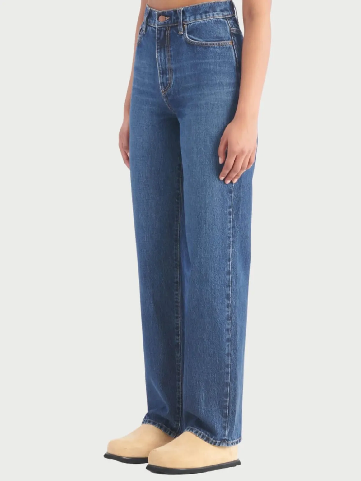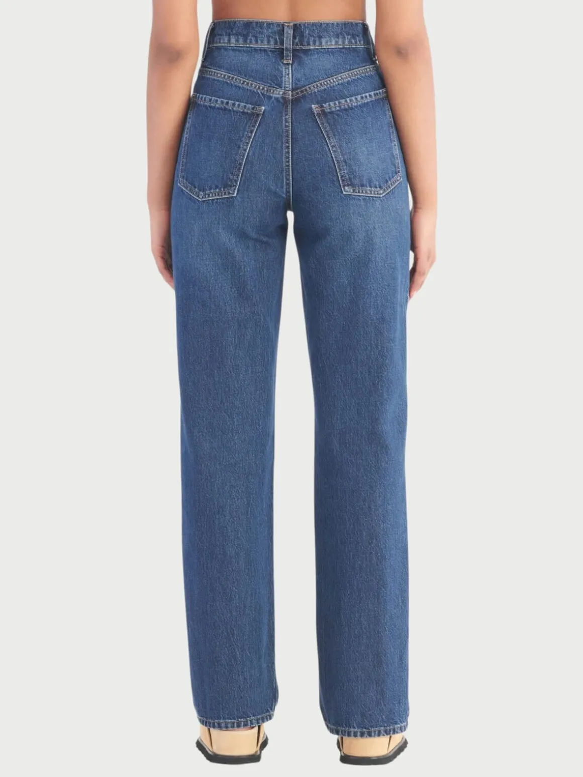 Lou Jean perfectly balances a Super High Rise with a relaxed straight and exaggerated length leg , constructed in a drapey cotton denim, this is the modern update to the everyday jean.