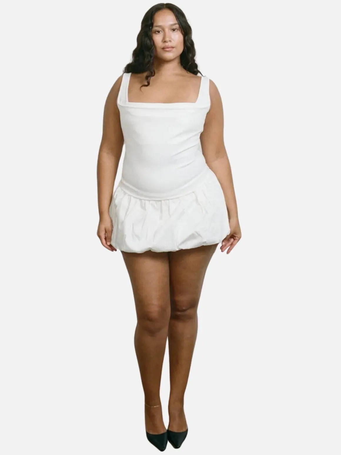 Welcome back our Luna Top, now in Dove. A soft spin on our classic Imogene Corset, she’s a sleeveless little number and pairs perfectly with the Micro Mini Skirt.
