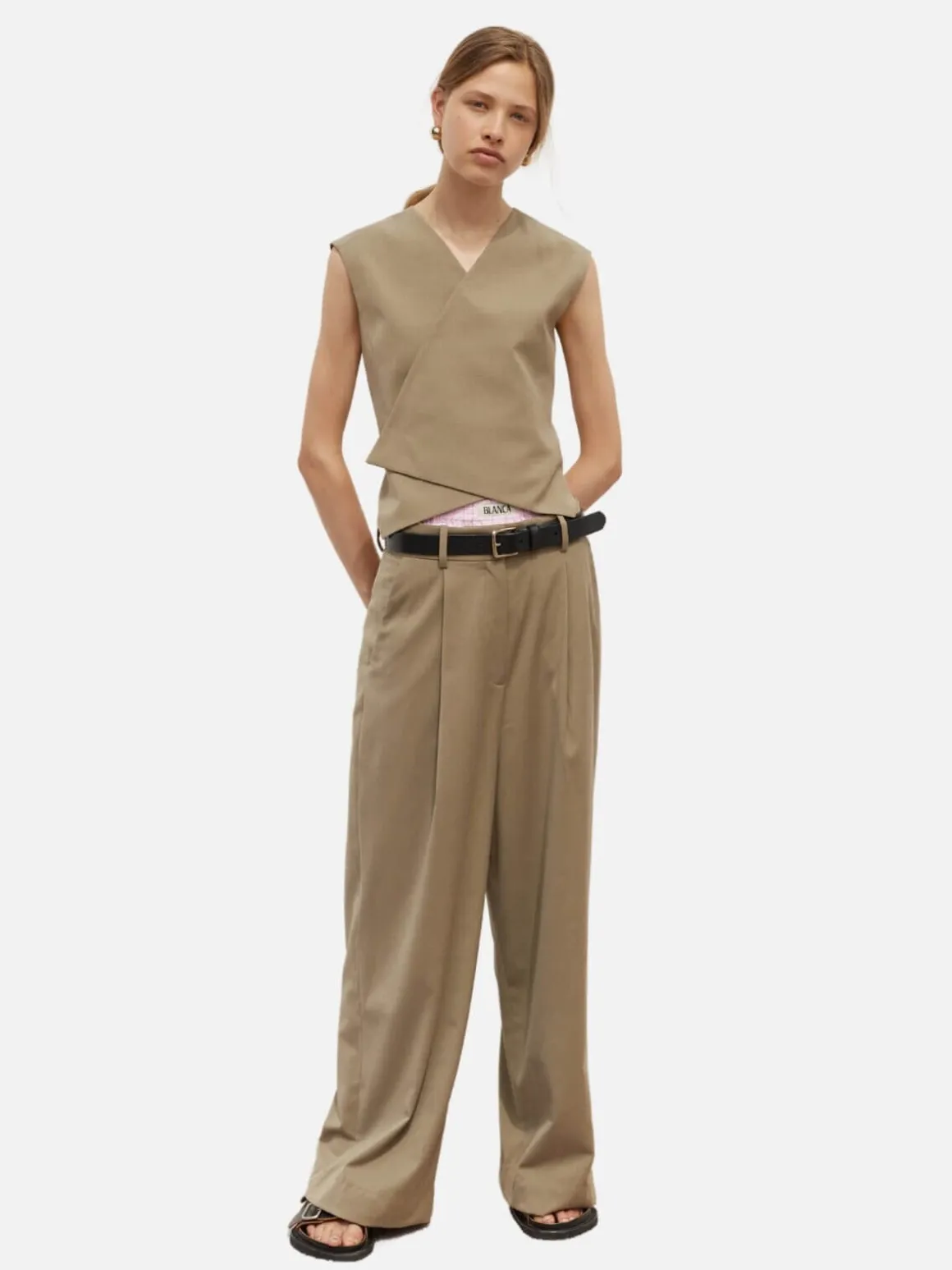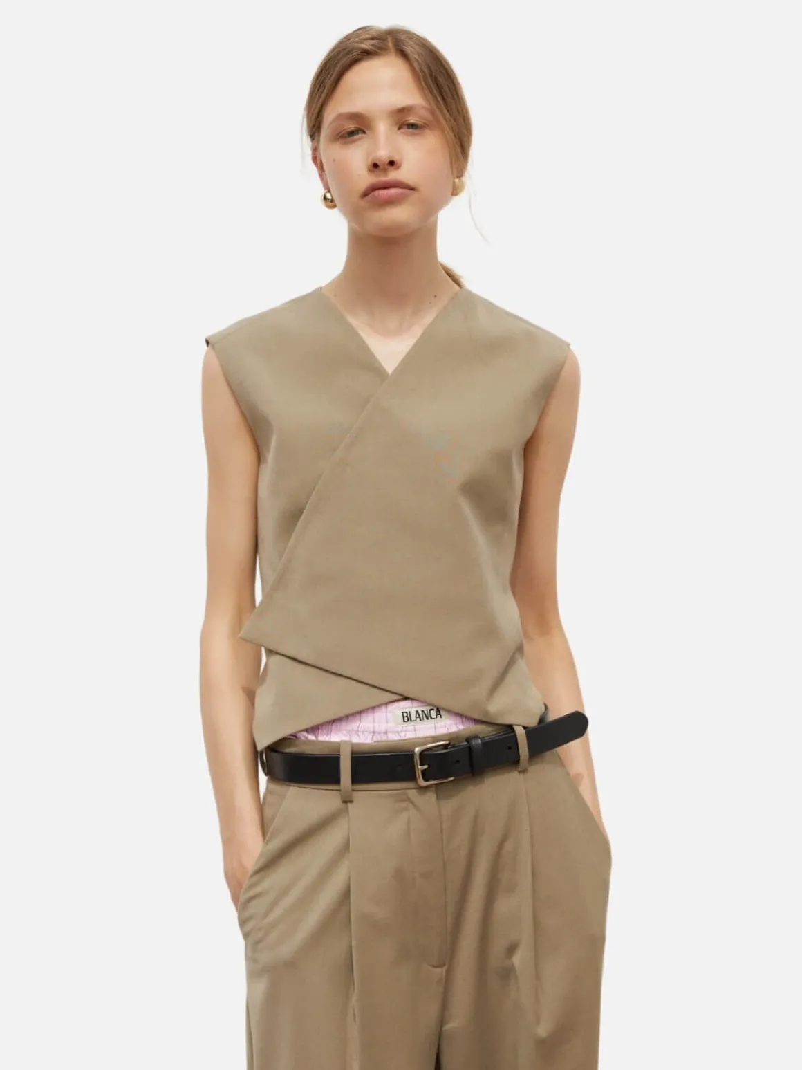 Seeking moments of sartorial ease among the chaos, find respite in the Marina Vest in Beige. With clean, directional lines, easy wear and a ready-for-anything attitude, this cross-over vest delivers instant confidence. Enter a different state. It’s put-together-ness in a garment, reaching its peak when worn with wide leg trousers – the ultimate zero-effort but high-impact look.