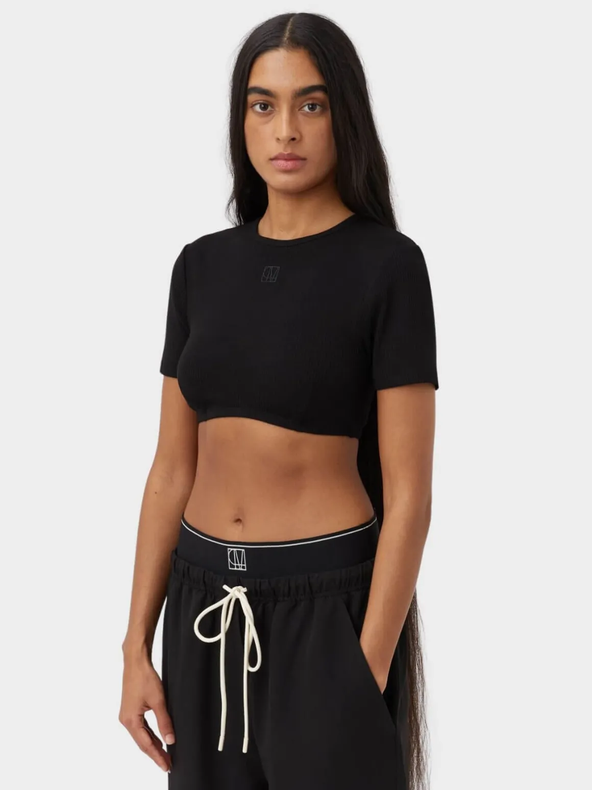 The Merle Tee is crafted with premium quality cotton that offers a soft touch against the skin, ensuring both comfort and durability. Designed for a close fit, the cropped style is worn perfectly with our Lucia Monogram Pant for a relaxed look, denim for an everyday look, or tailoring for an evening look.