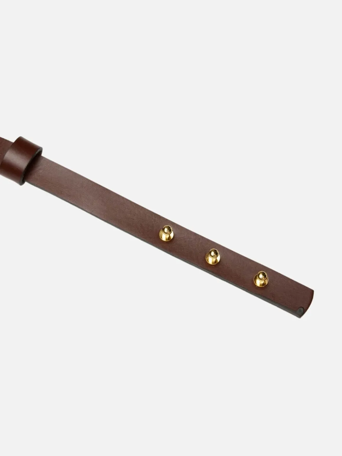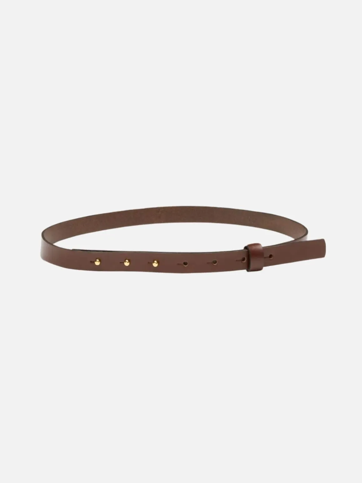 Complete your look with the Ralph Belt in chocolate. Crafted from leather, this thin waist belt was designed with a triple metal stud closure. Paired perfectly with V&W denim or suit pants.