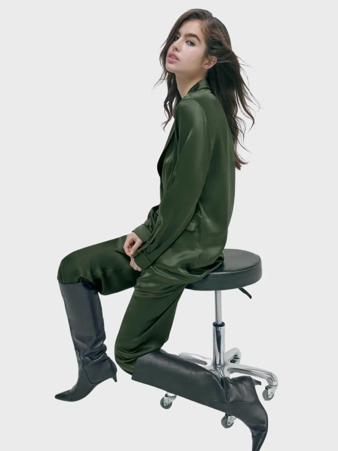 Cut with a loose silhouette and left unlined, this piece offers a sense of soft suiting. A deep collar, silk-covered buttons and pockets create a well-planned piece, while fluid silk drapes to create a flattering and versatile shape. Pairs back perfectly with a silk skirt or pant.