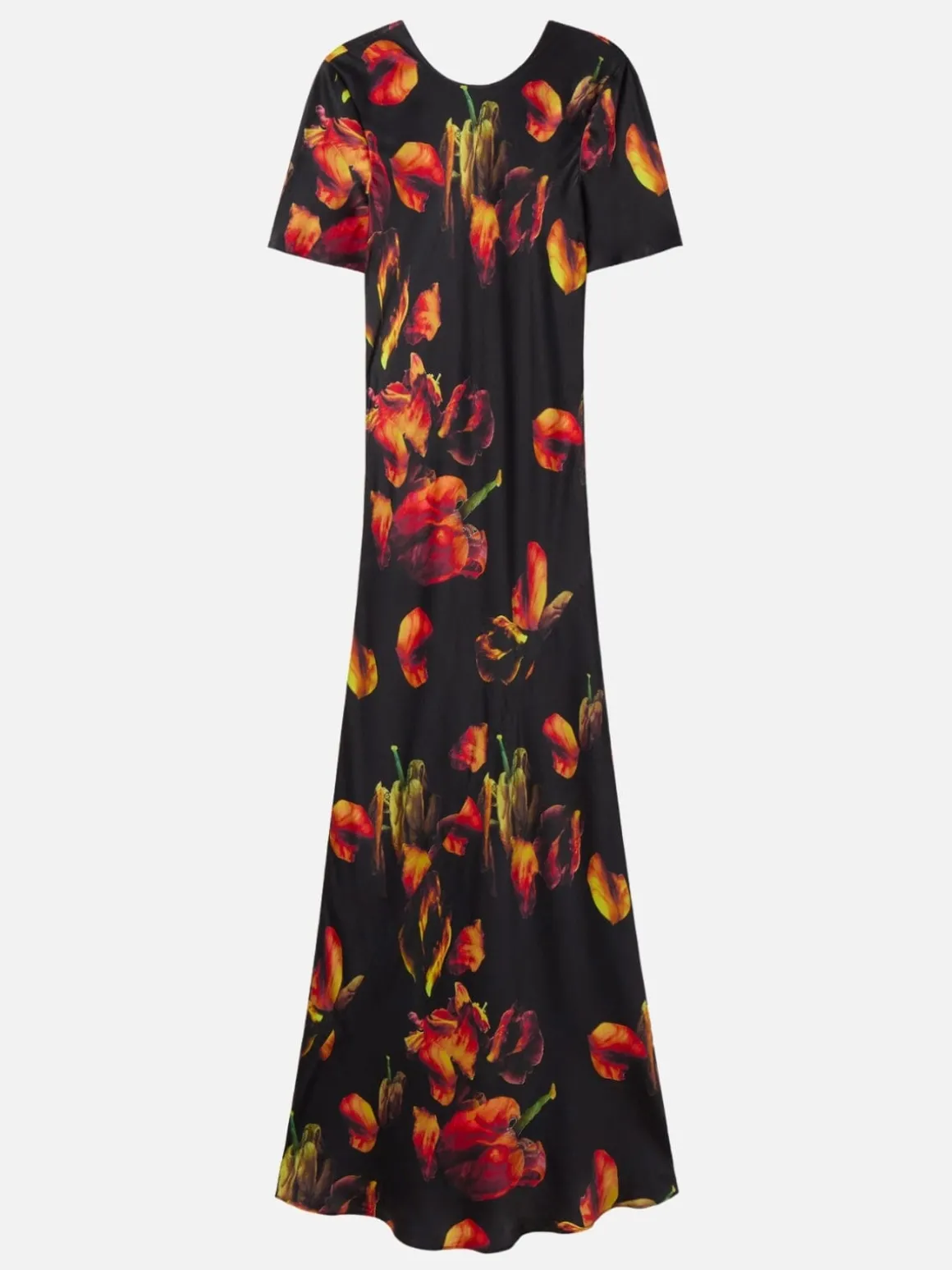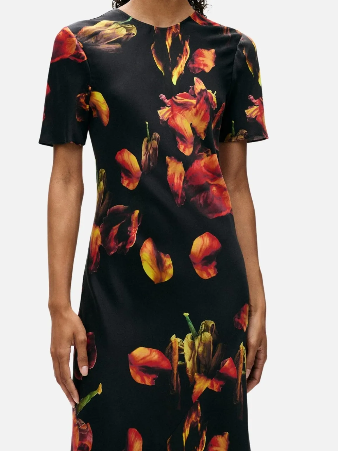 Silk Laundry bias cut dress crafted in 100% silk detailed with a round neckline with logo chain at the back. Cut on the bias to a fluid fit and ankle-length hemline.