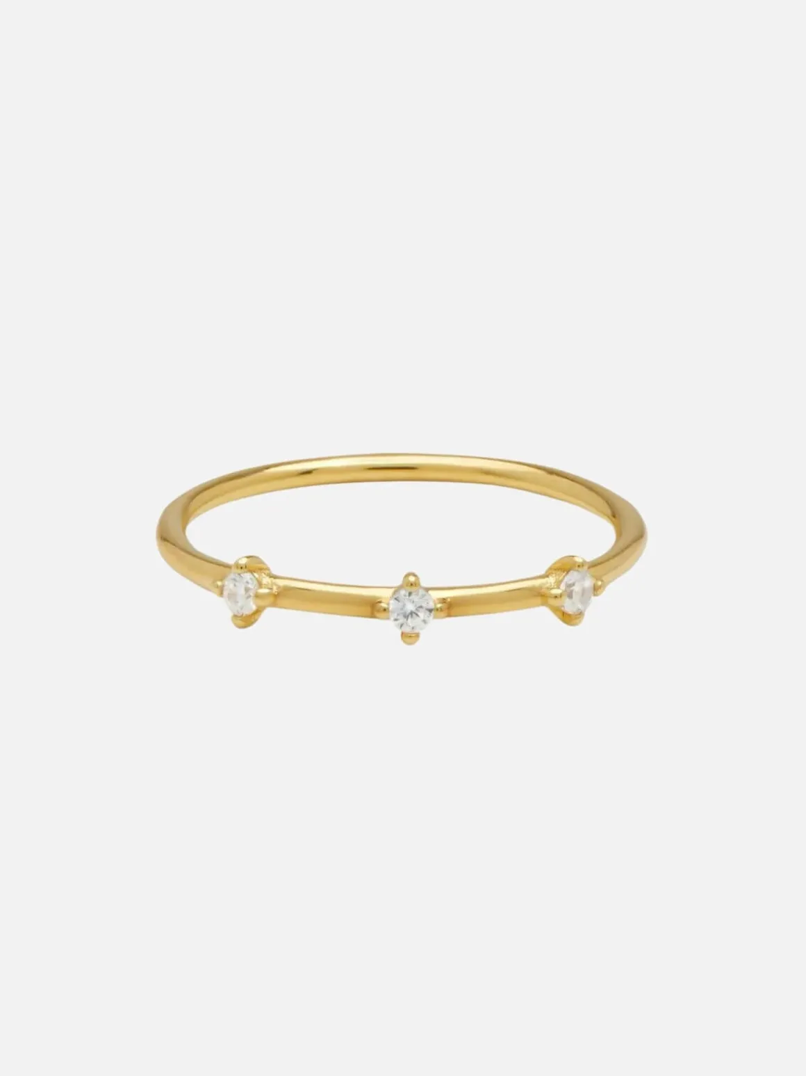 With the subtle sparkle of three petite stones set on a fine band, the Starlight Ring captures the enchanting twinkle of first stars in the evening sky. Stack with other rings for a curated look, or wear alone for dainty adornment. A timeless gift for someone special or to treat yourself.