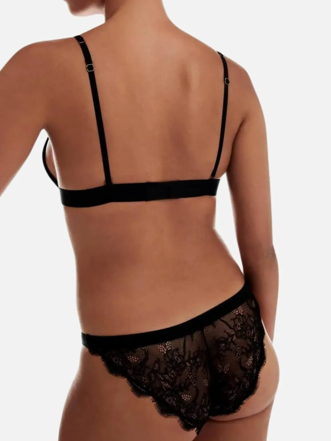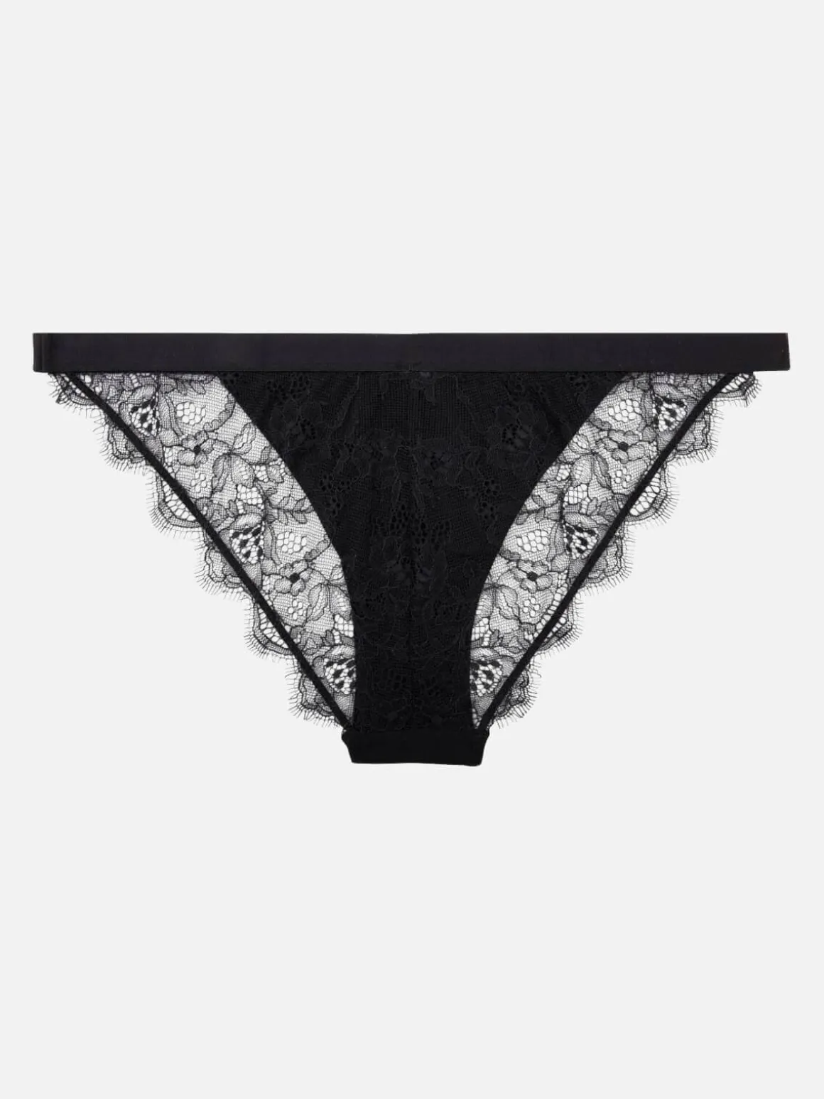 These tanga briefs in a sophisticated black are cut from comfortable stretch fabric at the front, with a revealing back in delicate sheer lace. Finished with a sweet scalloped trim, this style sits low on the hips for a flattering fit.